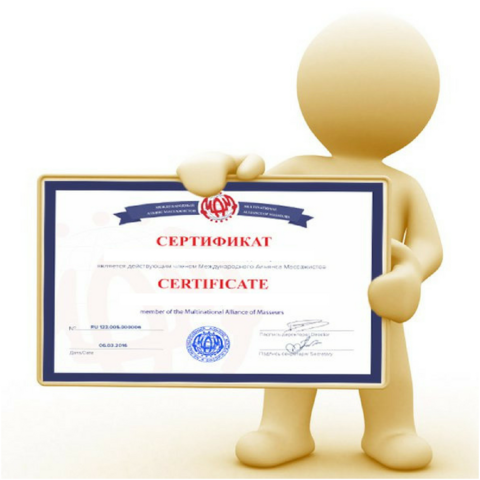 Сертификат о прохождении курса "Классический массаж" № RU 068.010.000123